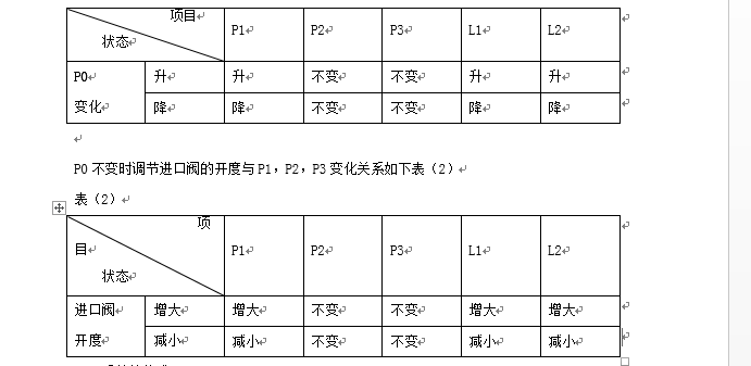 由表(1)和表(2)所反映的在P0改變時(shí)和進(jìn)口閥開(kāi)度改變時(shí),P1、P2、P3和L1、L2的變化可見(jiàn),進(jìn)氣P0的升高或降低,使P1、L1和L2發(fā)生相應的改變。如果要使流量L1和L2不變,可調節進(jìn)口閥的開(kāi)度往P0增加的相反方向變化,即P0增大,進(jìn)口閥開(kāi)度減少,或P0降低,進(jìn)口閥開(kāi)度增大。