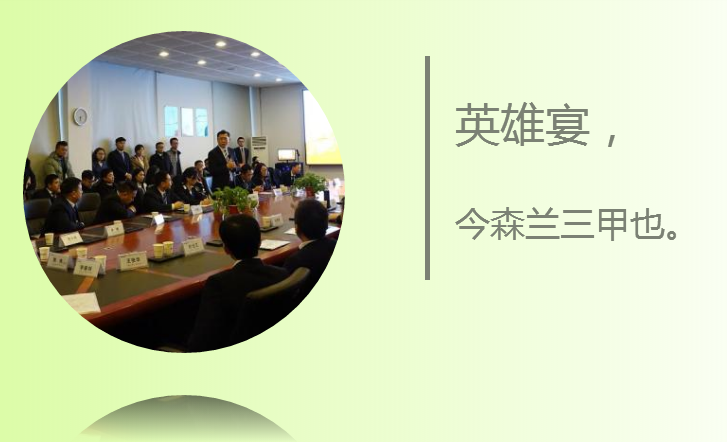 提起英雄宴, 是否會(huì )想起那場(chǎng)“華山論劍”。 “華山論劍”出自金庸《射雕英雄傳》,指武林高手在華山爭奪武功第一。與此相對的是森蘭銷(xiāo)售精英在中華大地競爭業(yè)績(jì)三甲,也就是森蘭·英雄宴。 長(cháng)歌一曲俠客行,劍鋒不染風(fēng)未停。 廿年老店,初心不忘,砥礪前行;仍修煉,顧視皆英雄也。若是肝膽照昆侖,又一年,可取三甲否? 吃江湖菜,行江湖事 提酒捧壺,做江湖人 尋找屬于自己的江湖路 其后一刻,將近酒,杯莫停; 君又一醉,道天明,執劍忘天涯;三分酒氣,七分劍意;不鳴則已,來(lái)年定當三甲。 具懷逸興壯思飛,欲上青天攬明月。 于江湖中行走,當風(fēng)雨襲來(lái)的時(shí)候,愿做一個(gè)身披蓑衣、目光如炬的客! 半段賦,半盞茶,半身青衫,半筆江山……