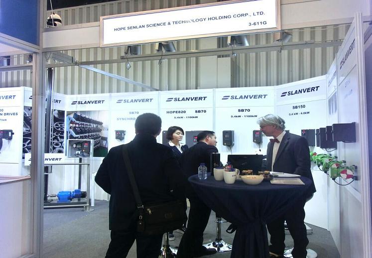 2015年11月24日~2015年11月26日,“德國紐倫堡工業(yè)自動(dòng)化展”在德國紐倫堡國際展覽中心順利開(kāi)展,本次展會(huì )吸引了全球電氣自動(dòng)化系統及元器件領(lǐng)域的知名企業(yè)參加,包括西門(mén)子、ABB、菲尼克斯等電氣巨頭。希望森蘭作為國內專(zhuān)業(yè)的變頻器生產(chǎn)廠(chǎng)商也參加了此次展會(huì ),在本次展會(huì )上,除展出常規的SB70、SB200等系列產(chǎn)品外,還首次向全球推出了希望森蘭最新系列的產(chǎn)品,包括:全新一代HOPE800系列高性能矢量控制型變頻器、SB150緊湊型低壓變頻器、高防護等級SB71系列防塵變頻器、SBH系列皮帶機專(zhuān)用高壓變頻器等。